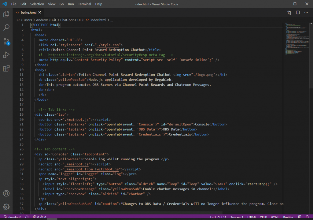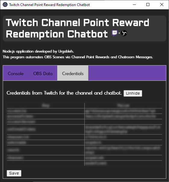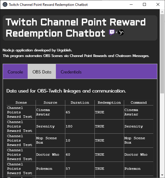 A graphical user interface was created for the Twitchbot from scratch using Electron JS. I found that users were less inclined to delve into the file directory to edit data or credential files to customize the functionality. And that gave rise to editable tables within the interface. In hindsight, it was a lot less practical using .csv files to populate the data. A simple JSON would have been significantly easier to process.